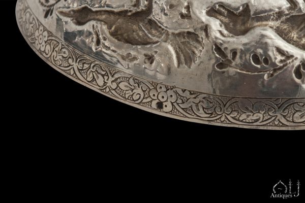 The outer rim of the bowl is adorned with an etched frieze of floral motifs, where it also has been imprinted with a 19th. Century European silver import mark, which shows the big appeal and the commercialisation aspect of these beautiful products on much later times.