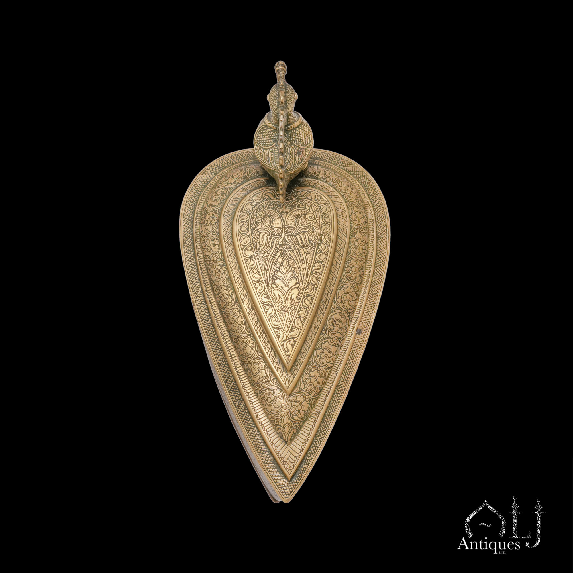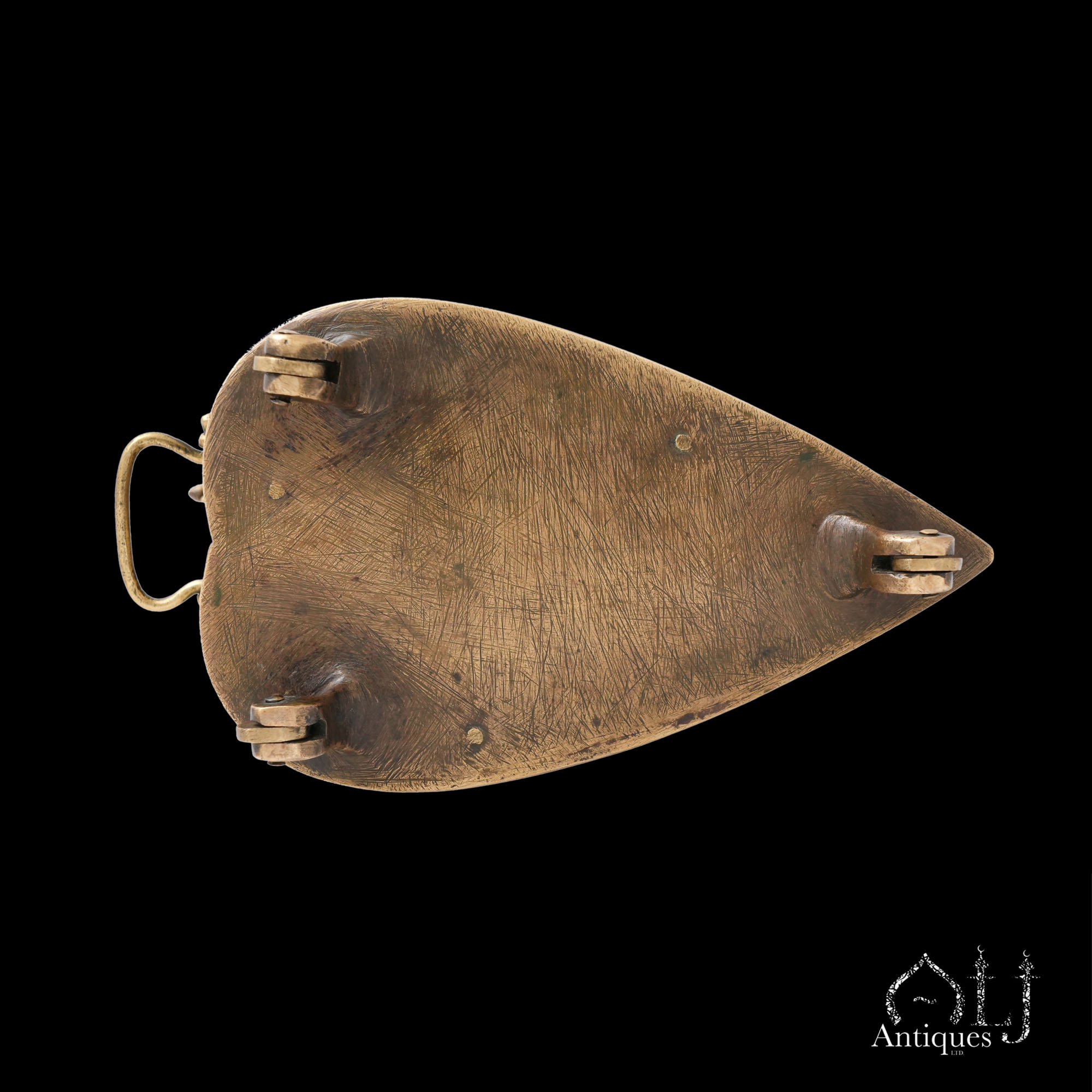 This rare two-layer Deccani brass pandan, cast in an elegant heart-shaped (betel-leaf) form, is a superb example of Central Indian craftsmanship around 1700 AD. The heart form is intimately connected with the cultural and emotional significance of the pan ritual, further enhancing the symbolic value of this container.