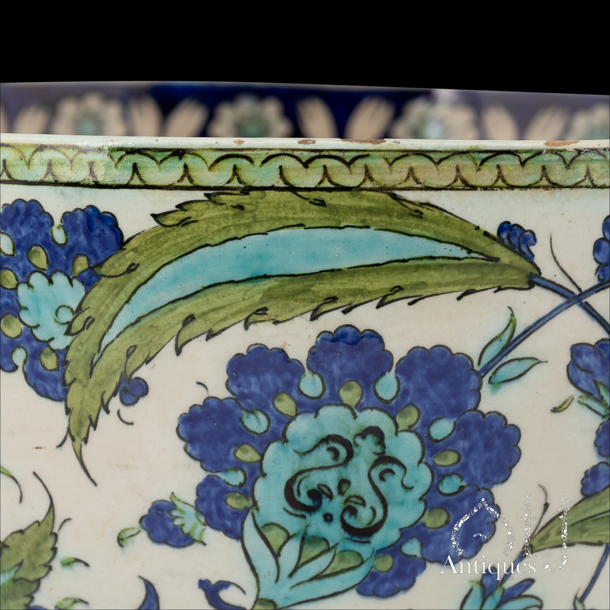 This elegant basin exemplifies Ulisse Cantagalli’s masterful reinterpretation of Ottoman Iznik and Damascus ceramics, infused with the refined artistry of Florentine maiolica. Founded in 1878, the Cantagalli Manifattura (Manifattura Figli di Giuseppe Cantagalli) became one of Europe’s foremost centres of ceramic revival, merging Renaissance design with Islamic artistic influence.