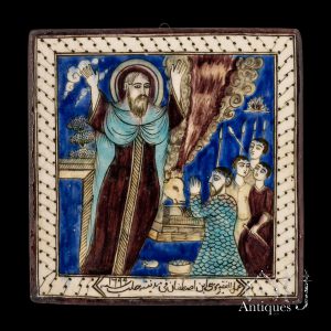 An Aleppo Underglaze-Painted Pottery Tile by al-Fakīr Mūsā Ibn Istifan or Stefan, Ottoman Syria, Dated 1699.