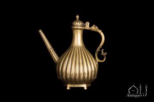 A Rare Drop Shaped Brass Ewer or (Aftaba\Ibrik) with a Dragon’s Head Spout and a Crescent Shaped handle, Probably the Deccan Sultanates, Central-India, Circa 17th. Century.