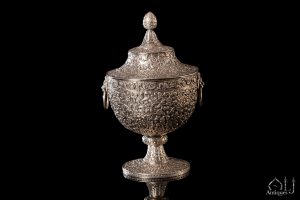 A Very Important Zoroastrian or Parsi Repousse Silver Fire Vessel (Afringanyu) in the shape of a Trophy Cup 19th Century, Iran, made by the Master Mahmoud Al Shirazi.