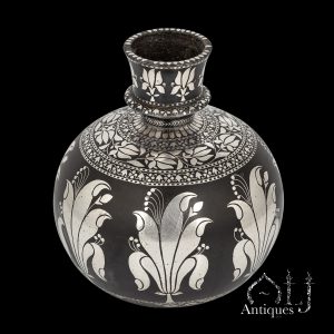 A Bidri Silver-Inlaid Globular Huqqa Base with Stylised Palash Flowers, Bidar, Deccan, Central India, late 17th century.