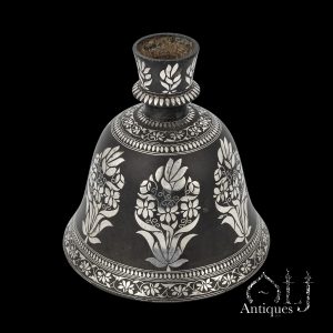 A Bidri Silver-Inlaid Bell-Shaped Huqqa Base with Mughal-Style Floral Bouquets, Bidar, Deccan, Central India, circa 1740s–1760s