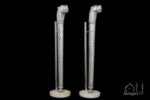 A Royal Pair of Embossed Silver Ceremonial Maces (Soonta) with Lion-Head Finials, Probably the Ex-Deccani Territories or Northern India, 19th century