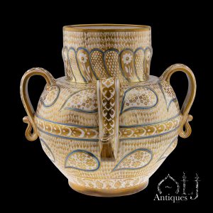 Ulisse Cantagalli (1839–1901) A Rare Monumental Hispano-Moresque Revival Gold Lustreware Jardinière with Cylindrical Neck Florence, Italy, circa 1880
